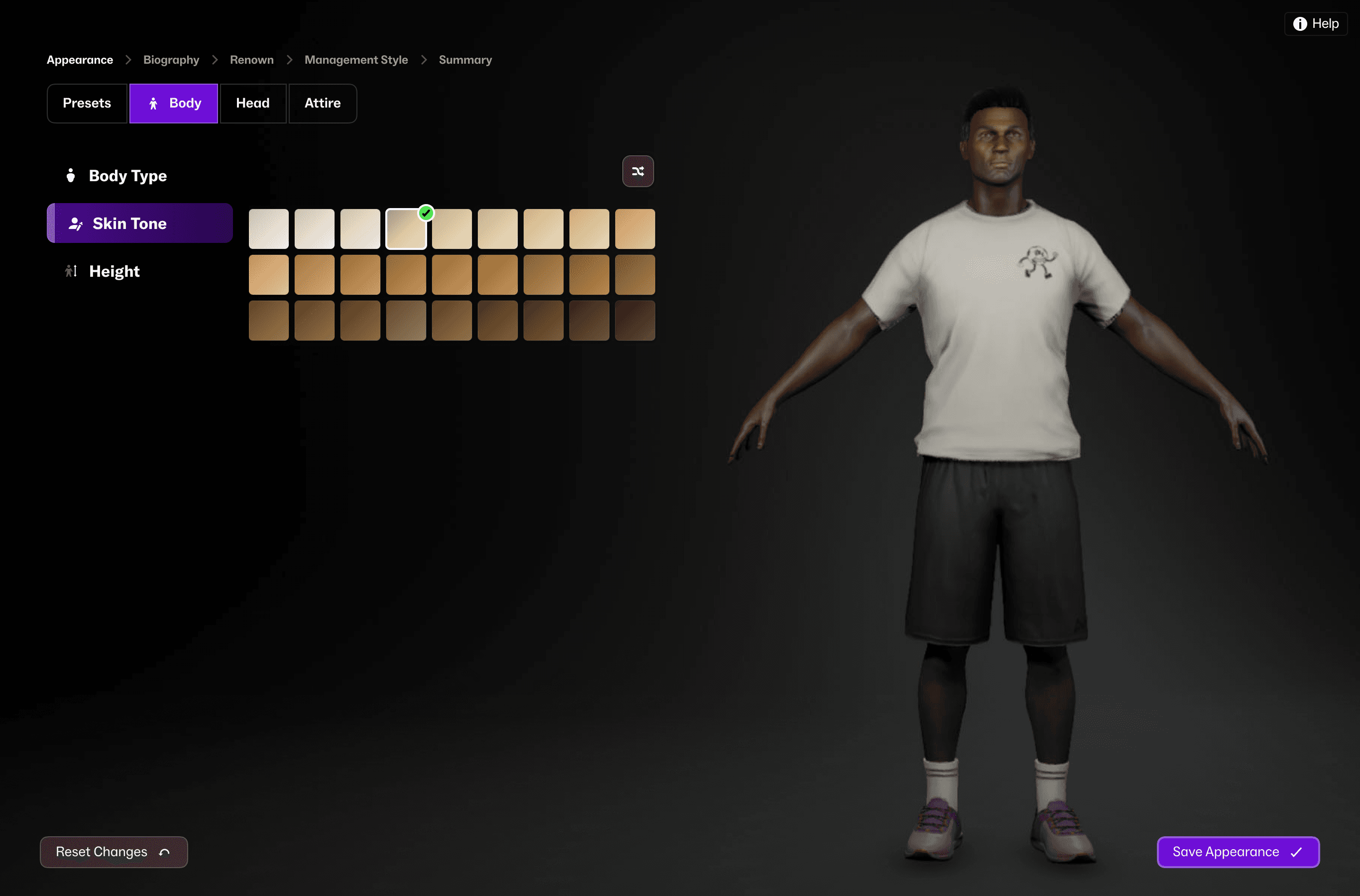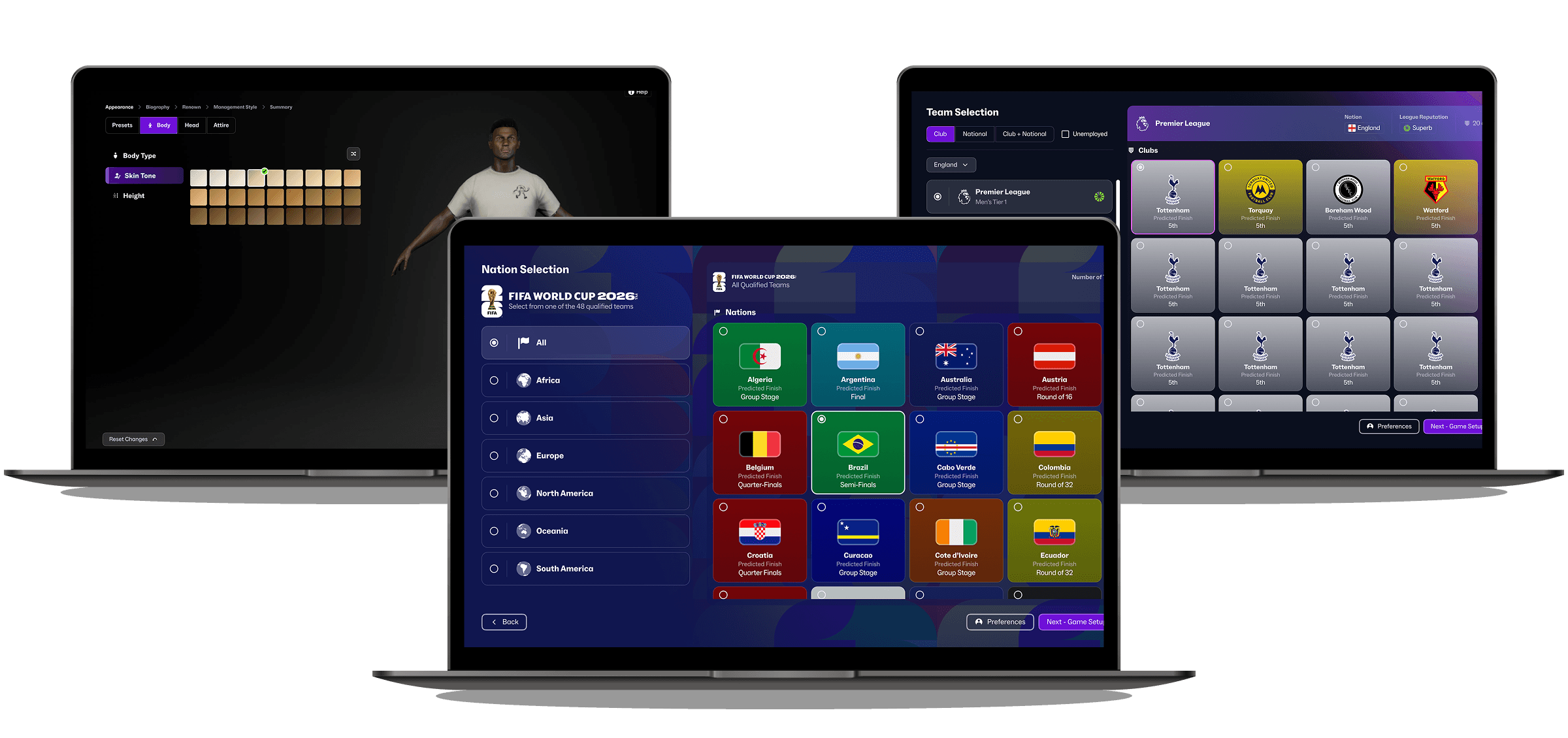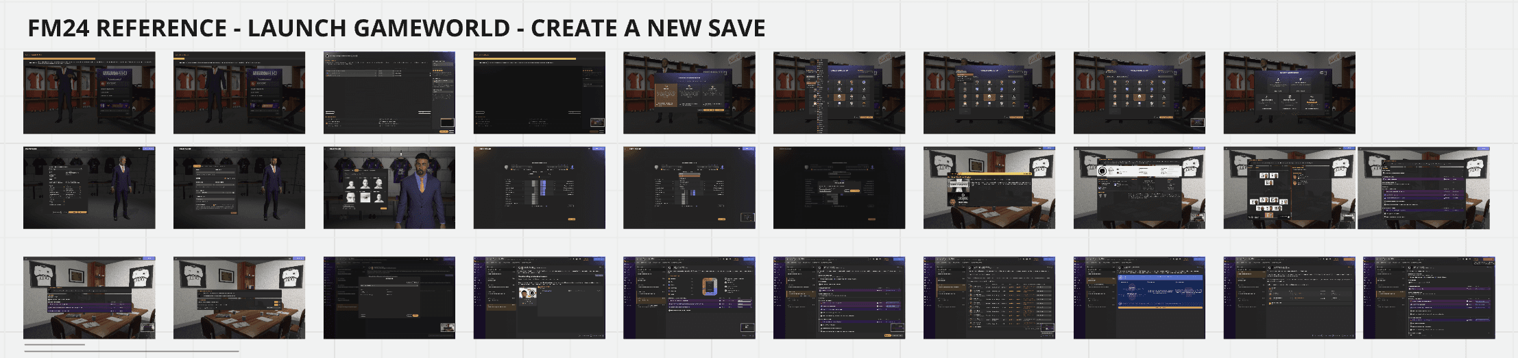 FM26 was a big task. A new game engine meant new possibilities, and the brief from the creative director was to refresh the UI to be more intuitive and up to speed with the modern video game landscape. My ask was to redesign the 'New Game Experience'. This included the first screens the user would have to interact with when the game first launched, including the character creator, club selector and main menu.