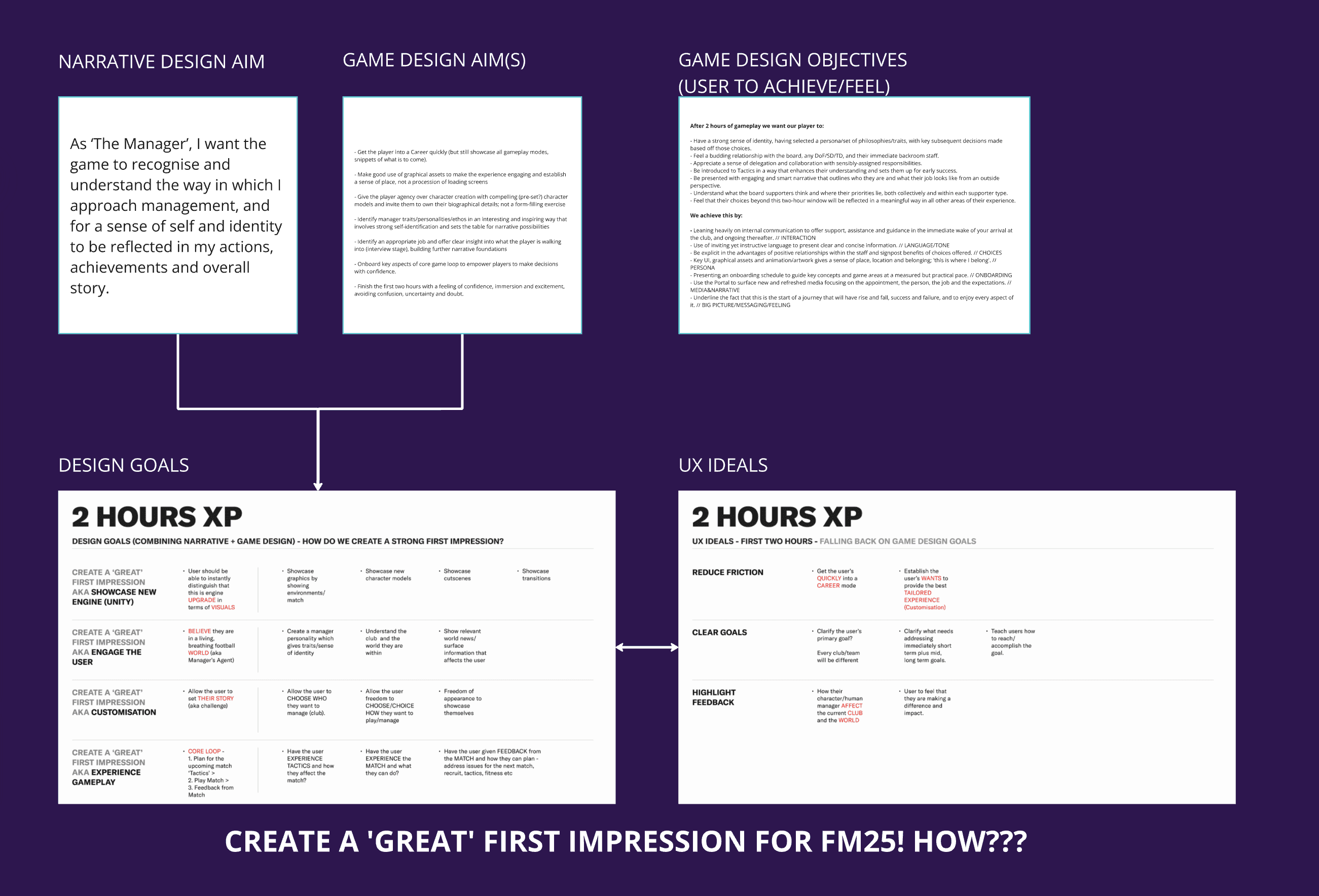 We had kick-off meetings with stakeholders and the QA team to understand more about user frustrations with the current new game experience, and the main improvements that need to be made for FM26.