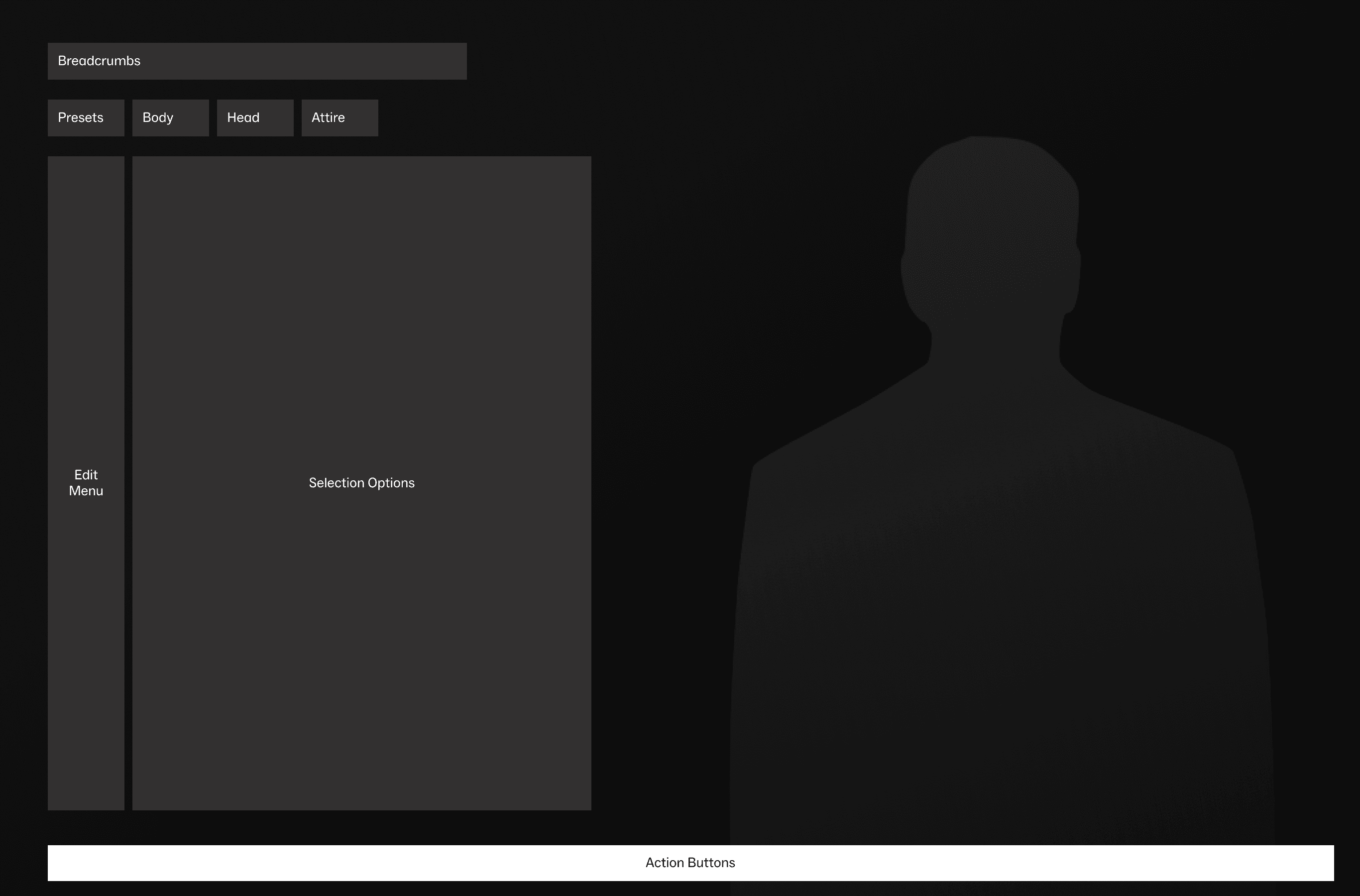From here I began looking at the start of the new game experience process which was the character creation. This would be the first time the user was exposed to the brand new graphics engine and therefore we needed it to allow for greater customisation options whilst ensuring the UI is intuitive to use.